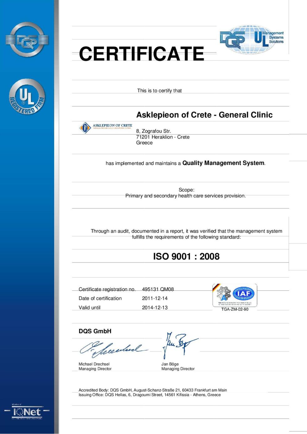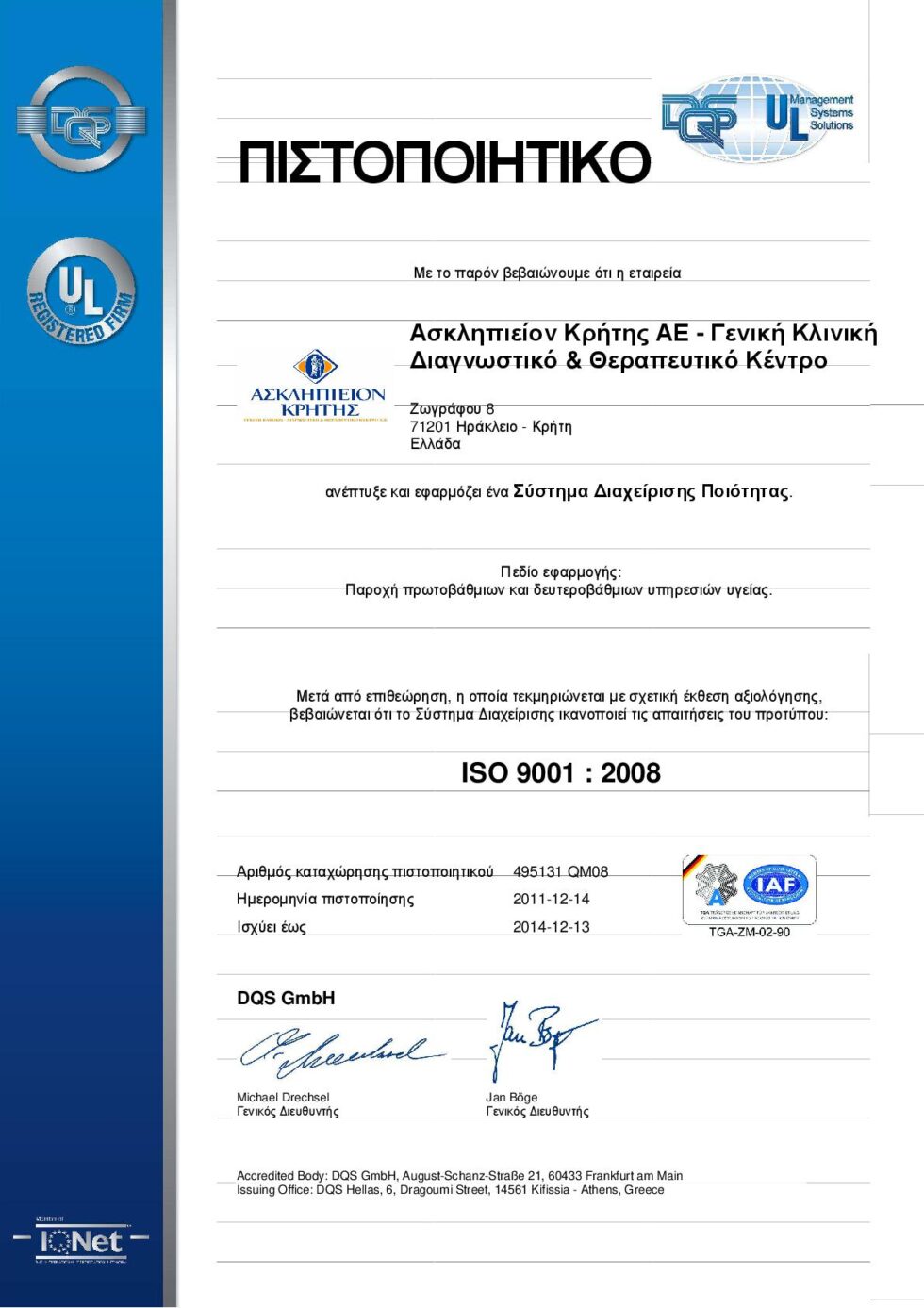 Για το σκοπό αυτό έχουμε καθιερώσει ένα Σύστημα Διαχείρισης Ποιότητας, το οποίο διαχειρίζεται όλες τις διεργασίες που απαιτούνται σύμφωνα με τις αρχές του Διεθνούς Προτύπου ISO 9001. Το μεταβαλλόμενο περιβάλλον με βάση τον ευρωπαϊκό ανταγωνισμό μπορεί να κατακτηθεί μόνο με την συνεχή αλλαγή και βελτίωση της αποτελεσματικότητας αυτού του Συστήματος.