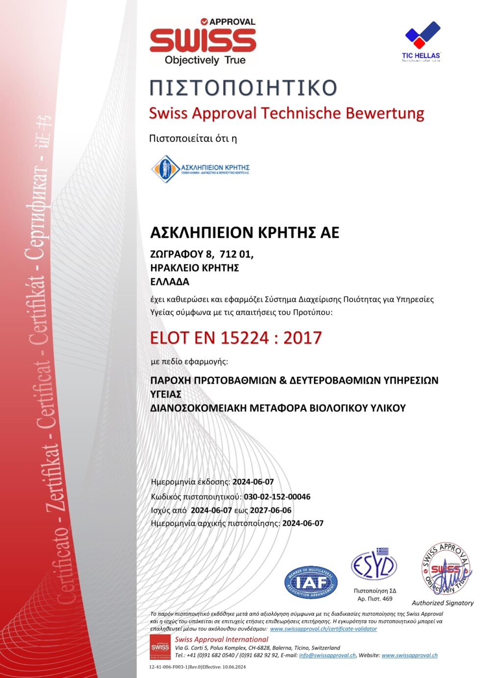 Για το λόγο αυτό θέτουμε συνεχώς νέους στόχους σε σχέση με την ποιότητα σε όλες τις δραστηριότητες μέσα στο «ΑΣΚΛΗΠΙΕΙΟΝ ΚΡΗΤΗΣ», ενώ παράλληλα επιζητούμε τους απαραίτητους πόρους για να διευκολύνουμε την επίτευξη αυτών των στόχων και την αύξηση της ανταγωνιστικότητας του τομέα, σε σχέση με την ποιότητα των παρεχόμενων υπηρεσιών μας.