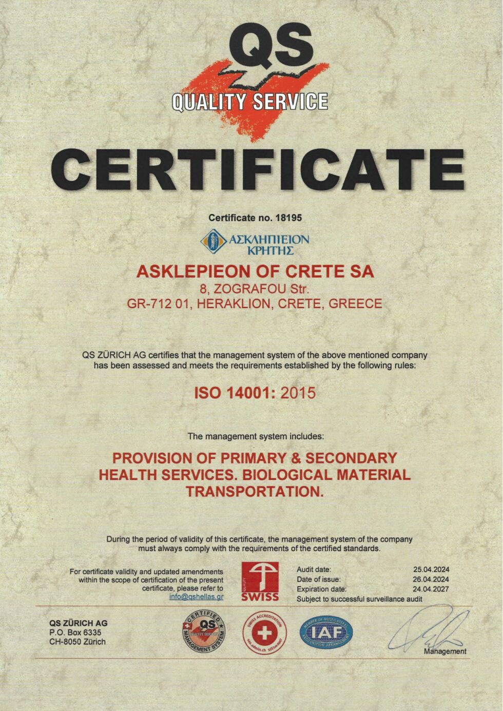 Το «ΑΣΚΛΗΠΙΕΙΟΝ ΚΡΗΤΗΣ», λαμβάνοντας υπόψη τις προσδοκίες του ασθενή ή του εξεταζόμενου και το ηθικό χρέος απέναντι σε αυτούς, διακηρύσσει ότι θα παρέχει υπηρεσίες υψηλού επιπέδου, τις οποίες θα βελτιώνει συνεχώς, οποτεδήποτε χρήζουν βελτιώσεως.